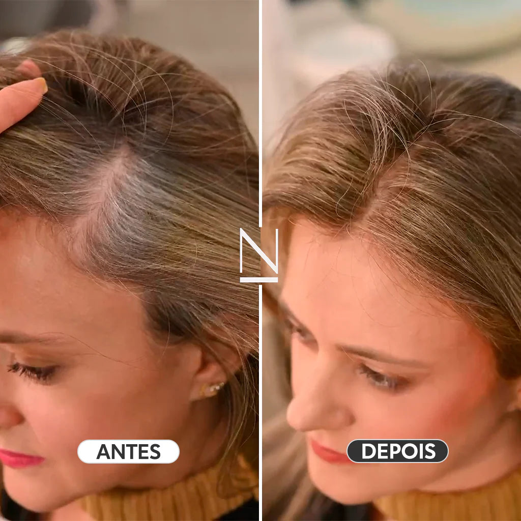 Lave os cabelos com shampoo de limpeza e não aplique condicionador, seque totalmente antes da aplicação. Aplique o produto diretamente nos fios brancos ou grisalhos.